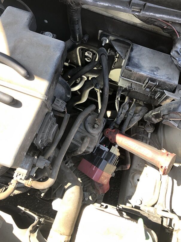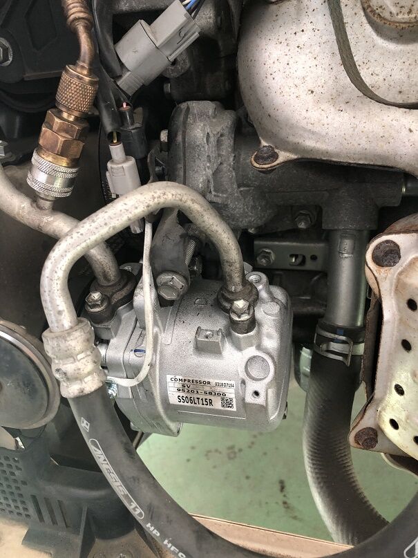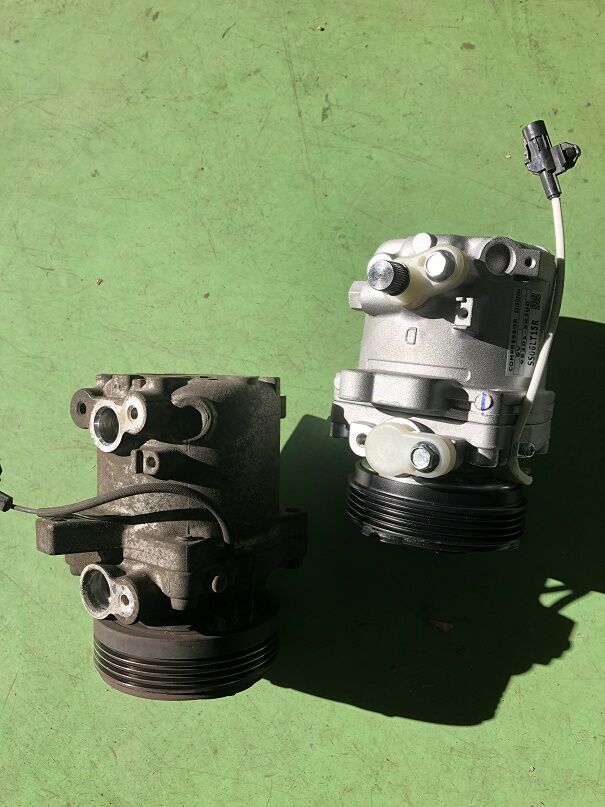 クーラーコンプレッサーはベルト、配管を外してリビルト品へ交換。