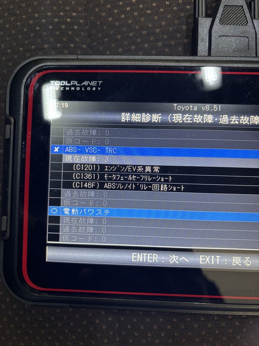 交換作業後にトラブルコード消去、ABSポンプ強制駆動ブレーキフルードエア抜きをして作業完了です。